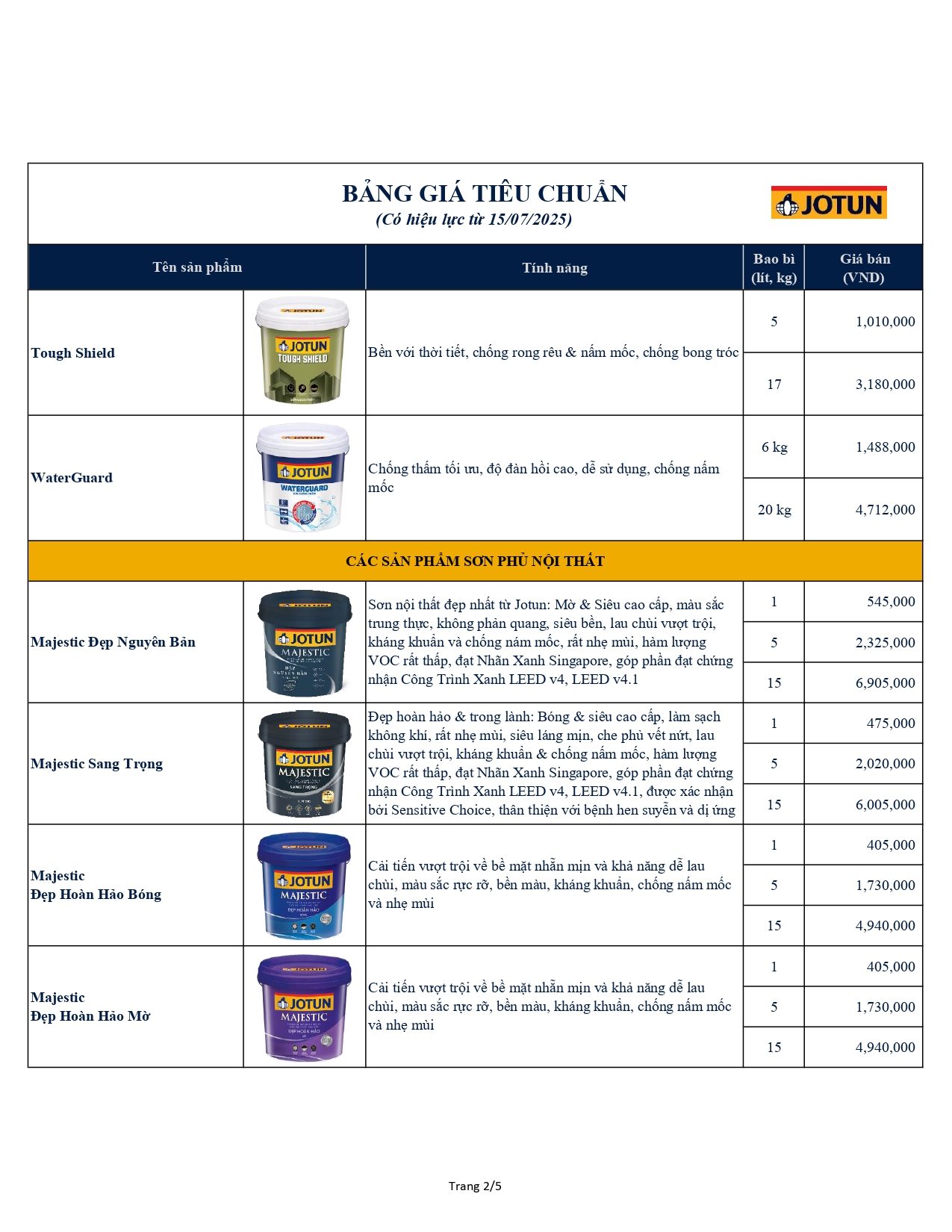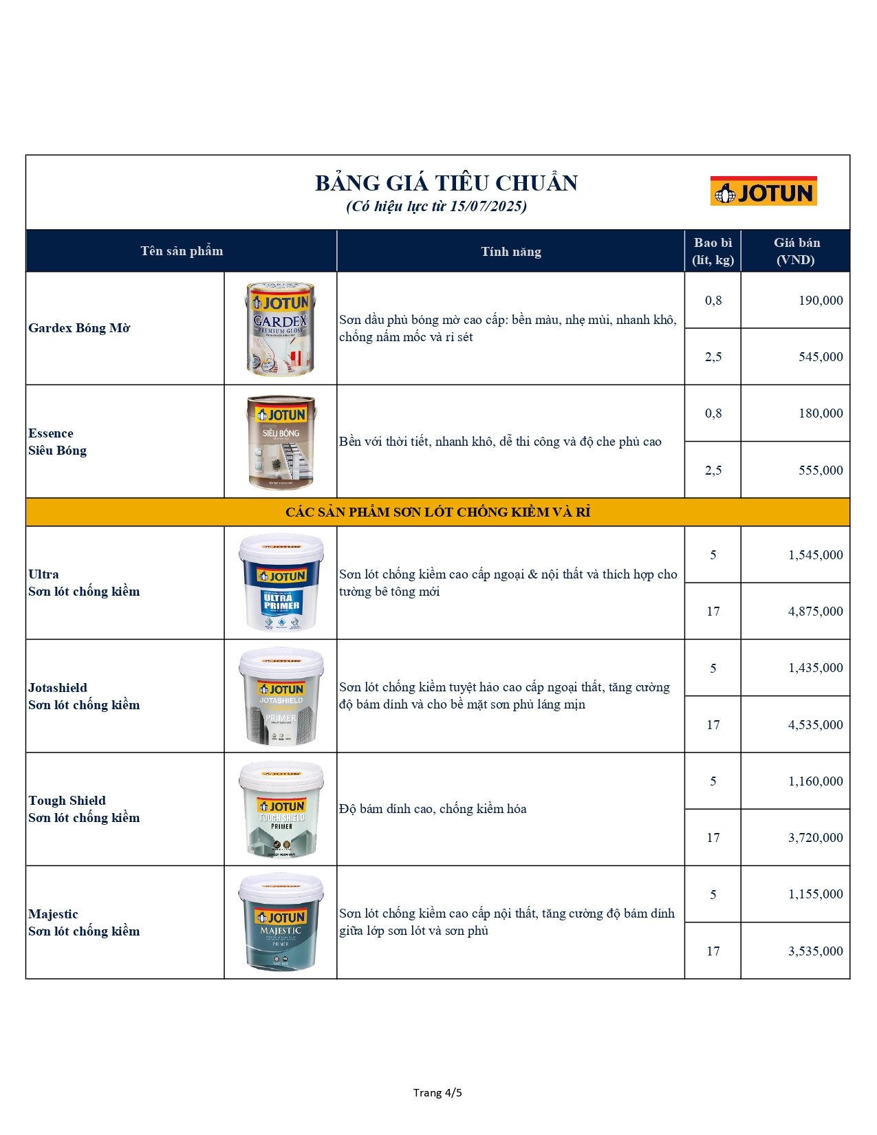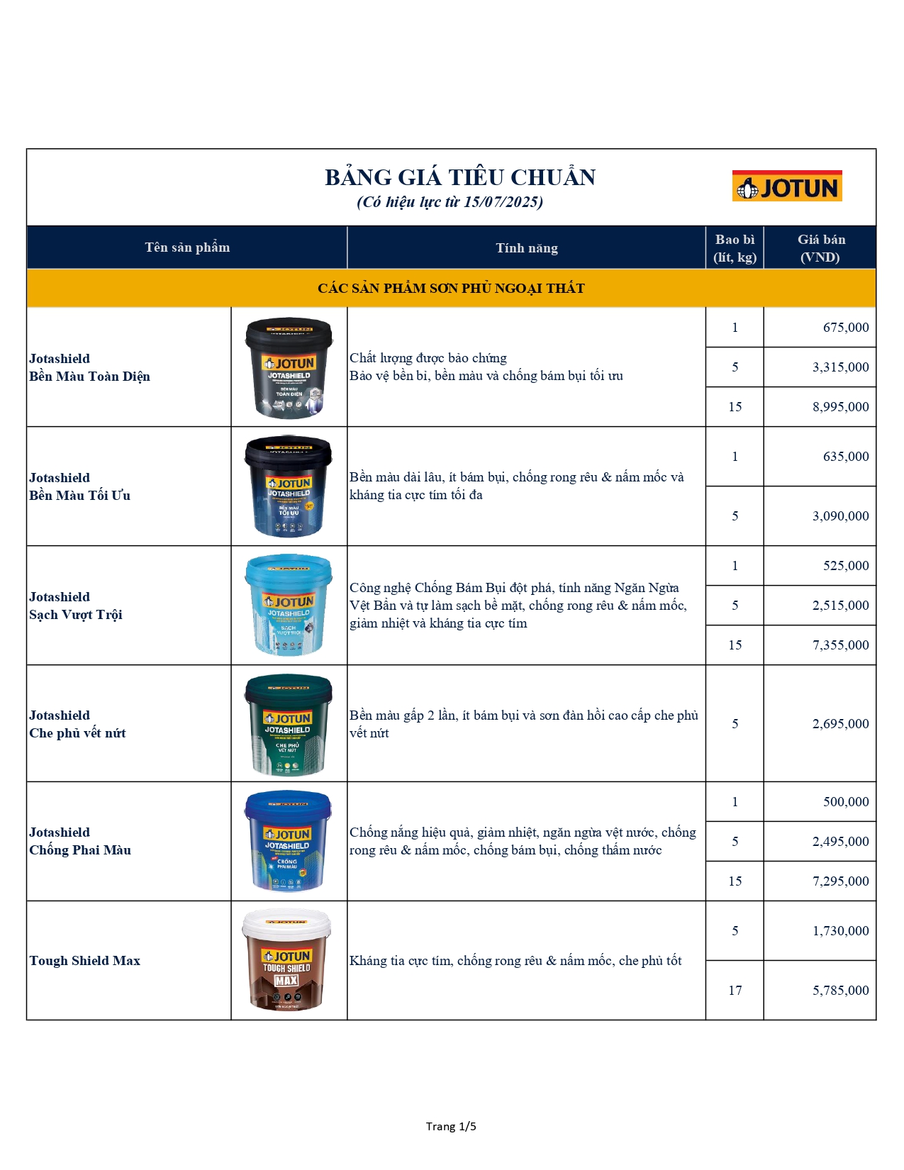 Bảng giá Jotun mới nhất cập nhật 15.07.2026