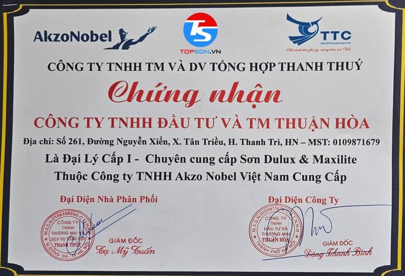 Chứng nhận Đại lý cấp I hãng sơn Dulux