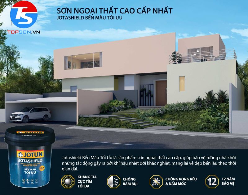 Sơn Jotun đang đứng đầu thị trường về chất lượng lẫn giá trị, đặc biệt là mẫu sơn ngoại thất Jotun Jotashield Bền Màu Tối Ưu mang đến cho ngôi nhà của bạn vẻ ngoài sang trọng và sự bảo vệ chắc chắn dưới thời tiết nhiệt đới ẩm gió mùa ở nước ta.