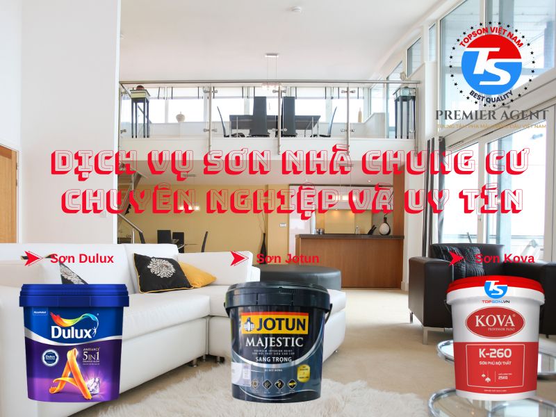 Hãy tham khảo các dòng sơn chất lượng như sơn Jotun, sơn Dulux, sơn Kova tại Topson để hoàn thiện không gian sống của bạn một cách hoàn hảo nhé! Đây là công ty sơn duy nhất cung cấp giải pháp toàn diện cho việc sơn trang trí cho các công trình và căn hộ chung cư.