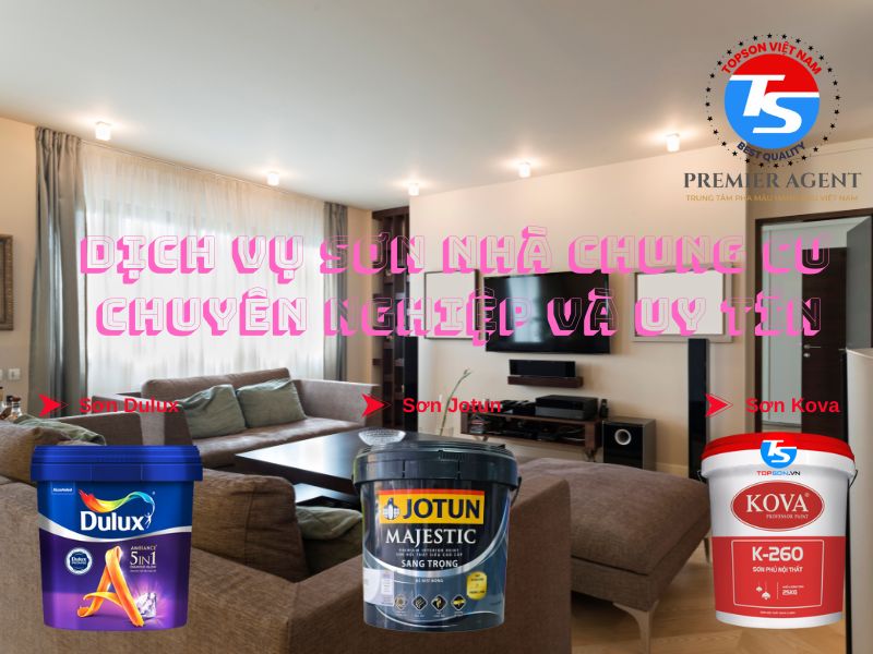 Hãy tham khảo các dòng sơn chất lượng như sơn Jotun, sơn Dulux, sơn Kova tại Topson để hoàn thiện không gian sống của bạn một cách hoàn hảo nhé! Đây là công ty sơn duy nhất cung cấp giải pháp toàn diện cho việc sơn trang trí cho các công trình và căn hộ chung cư.