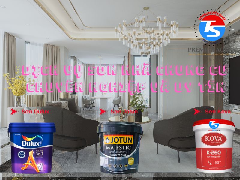 Hãy tham khảo các dòng sơn chất lượng như sơn Jotun, sơn Dulux, sơn Kova tại Topson để hoàn thiện không gian sống của bạn một cách hoàn hảo nhé! Đây là công ty sơn duy nhất cung cấp giải pháp toàn diện cho việc sơn trang trí cho các công trình và căn hộ chung cư.