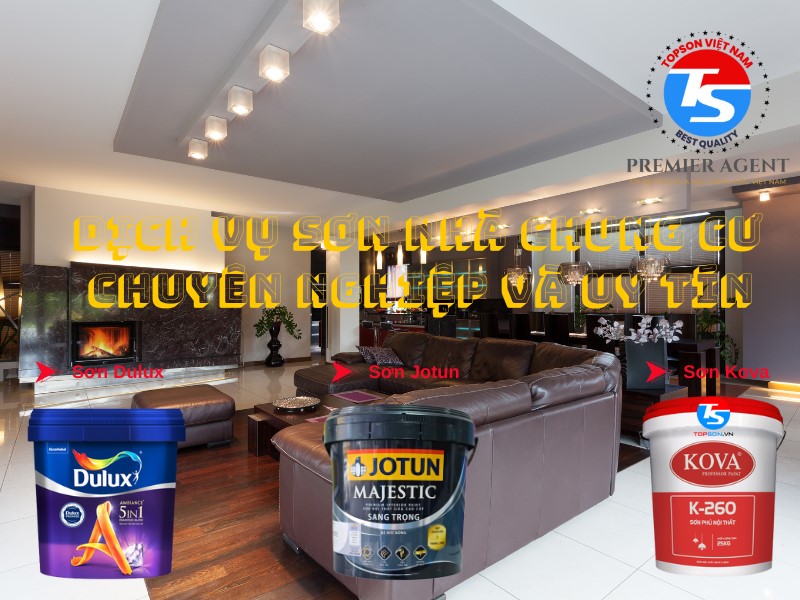 Hãy tham khảo các dòng sơn chất lượng như sơn Jotun, sơn Dulux, sơn Kova tại Topson để hoàn thiện không gian sống của bạn một cách hoàn hảo nhé! Đây là công ty sơn duy nhất cung cấp giải pháp toàn diện cho việc sơn trang trí cho các công trình và căn hộ chung cư.